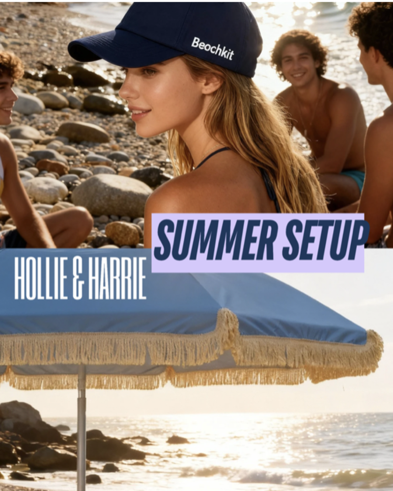 Discover the new Hollie & Harrie collection in serene Sage and Light Blue — designed for those who love effortless coastal luxury. Buy a Hollie & Harrie Umbrella & Get 15% Off Any Beachkit Gear