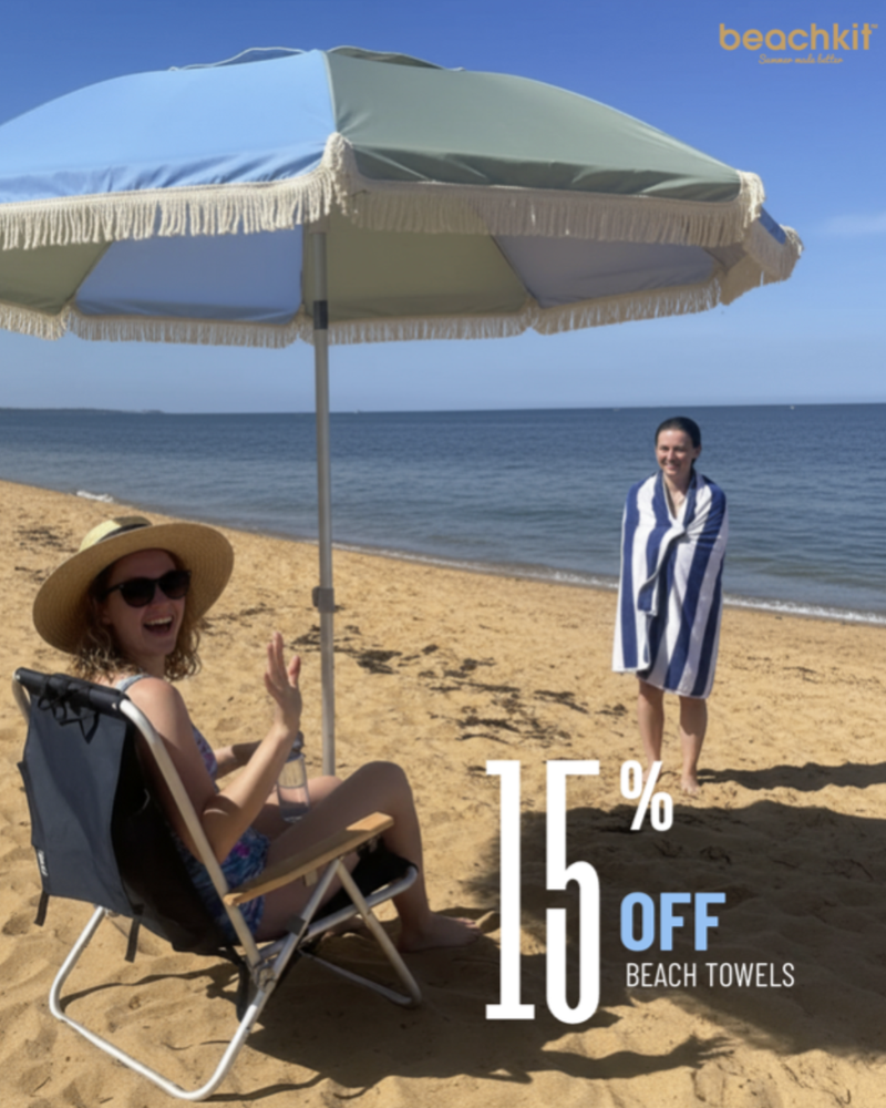 Buy a Beach Umbrella & Get 15% Off Any Beachkit Beach Mat. Pair your favourite Beach Umbrella with a coordinating Beach Mat and enjoy 15% off instantly, no code required.