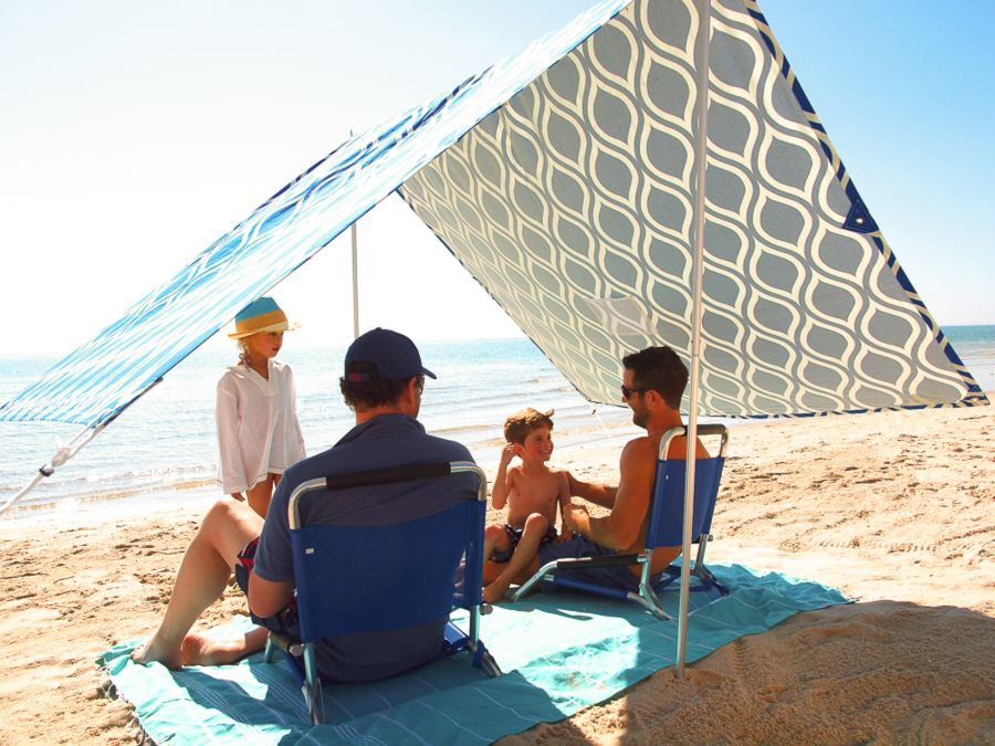Designed in Australia for beach lovers. Feel the breeze beneath 6m² of shade with UPF 40 blocking 97.5% UV. It’s versatile and lightweight making it the perfect companion for your summer days. Suitable for grass or sand and easily assembled by one person in minutes with multiple set up positions.
